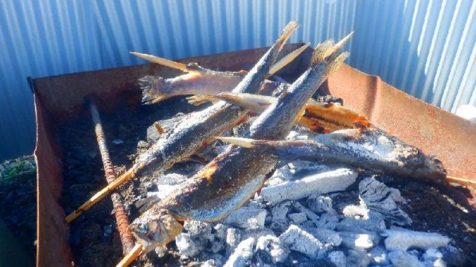 魚の下処理(さばく作業)、串刺し、そして焼き上げは、お客様ご自身でお願いいたします。