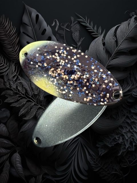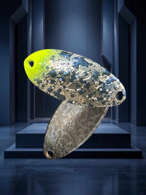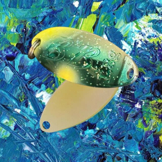 シルバーベースで表にも裏にもブラック×ブルーパールを配色した協力な明滅系カラー。チャートのバイトマーカーは状況を選ばずアングラーの釣りを支え、強い存在感を放ちます。