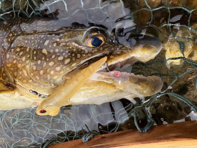 フッキングした瞬間の重量感は、やはりレイクトラウトらしいものでした。