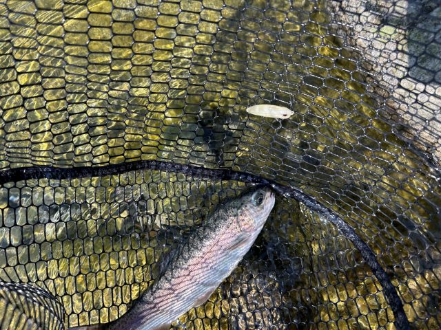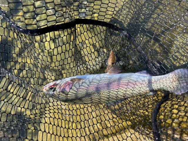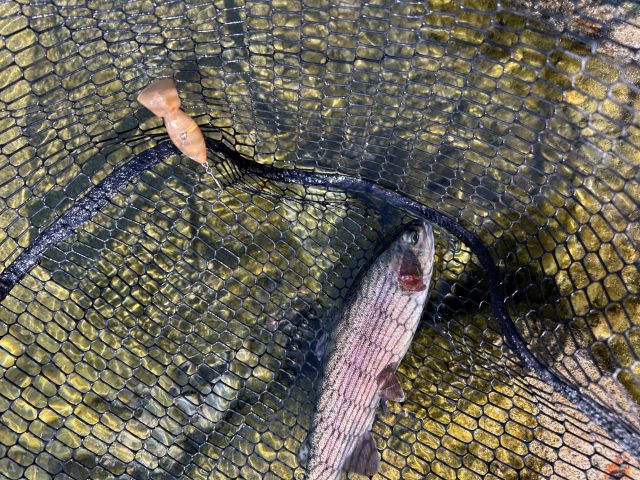 かけ上がり付近では婚姻色が出たニジマスが追いかけあっていました。