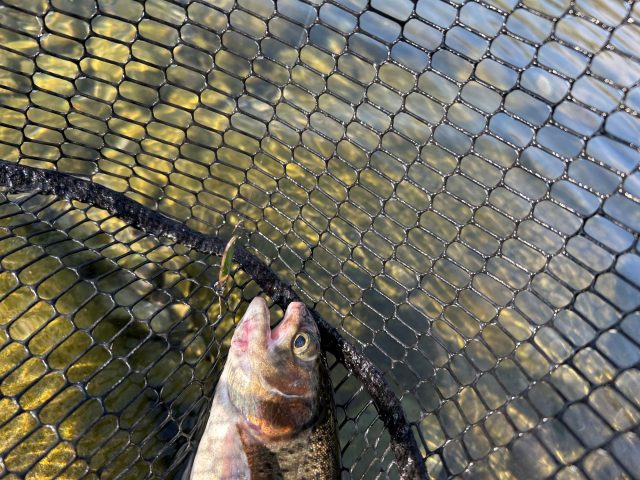 その後は沖では反応が無くかけ上がり付近でチェイスが多いためその魚を狙うことに