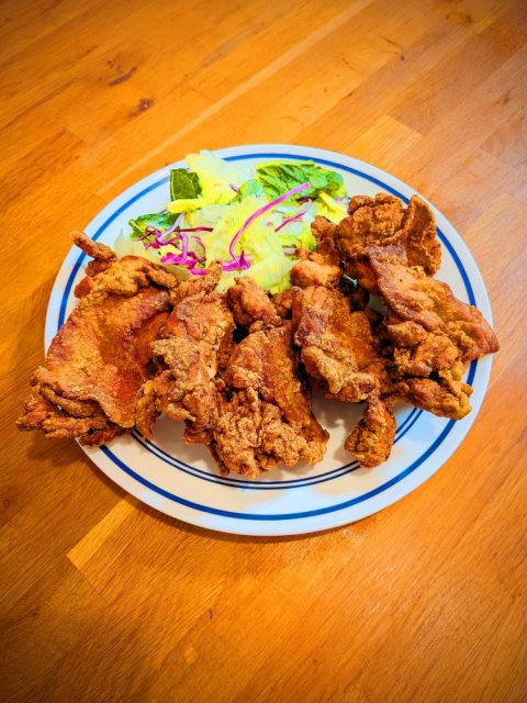 なんと、手のひらサイズの巨大な唐揚げがゴロゴロと5つも盛られています!