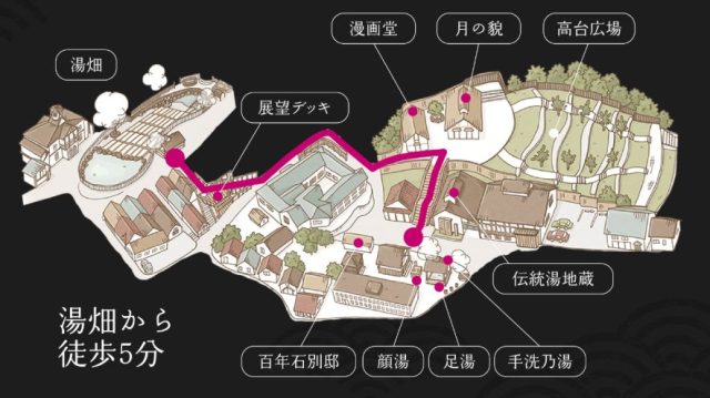 湯畑から直線で100m位の距離なので気軽に行けますよ。