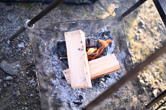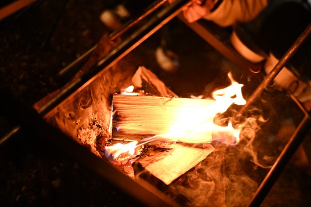 そしてキャンプの醍醐味・焚き火をしながら知人と楽しく過ごしました。