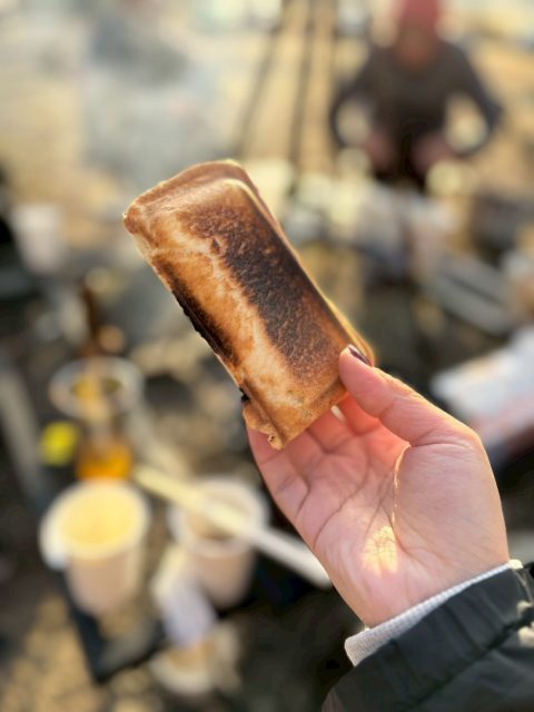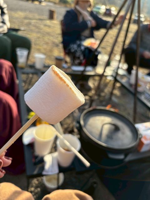 車中泊で一泊した後、朝は知人たちとパンを焼いたり焼きマシュマロをしたり楽しい時間を過ごしました。