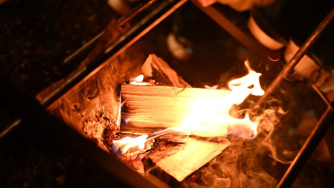 そしてキャンプの醍醐味・焚き火をしながら知人と楽しく過ごしました。